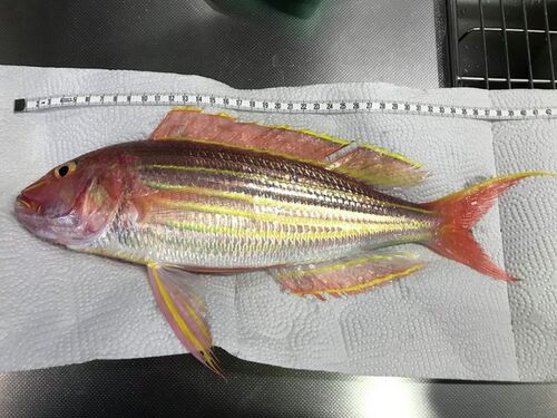 山口県産のイトヨリ、1000円を買う。 銀色ベースにピンクと黄色。春に向けて、こんな配色のスカーフが欲しいな〜と思う。 唇にも黄色のラインが入ってます。 お刺身OK、ということだったので、初日は半身分の皮を霜降りにして、お刺身に仕立てる。 ワサビが…