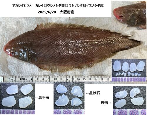 大阪府産のアカシタビラメ、2尾で380円を買いました。 口の形がオウムっぽいです。 ムニエルにしました。 このアカシタビラメの耳石です。