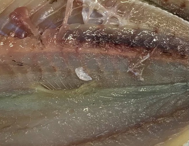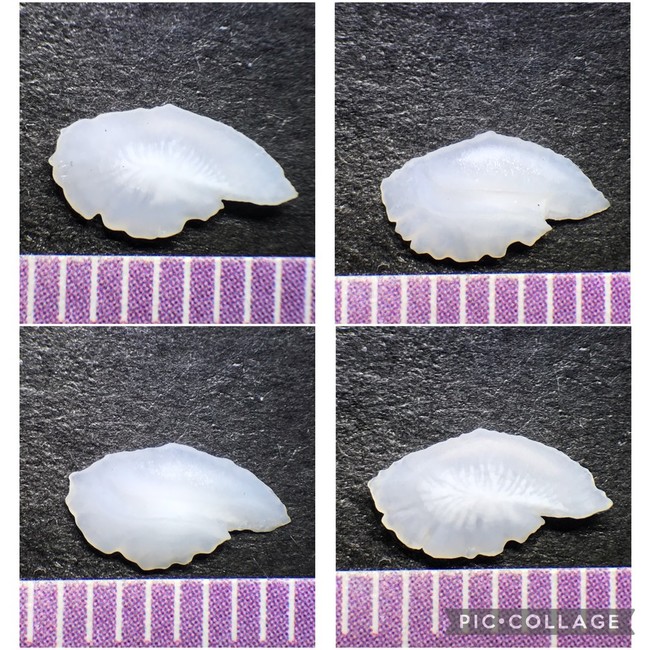 2021-09-28 アジの開き アジ スーパーで何気なく干物を見ていたら、アジの開きの上に白いものがキラリと光った。 メガネを取って(老眼なもんで)よーく見ると、やっぱりこれは耳石ではないか! アジを開いた時に耳石が飛び出して、それが身に乗っかったまま干されてパックされたのかな〜?と妄想しつつ、ついカゴに入れてしまった。 長崎県産のアジを使ってて、2尾176円。 焼いて食べました。普通に美味しかったです。 ちゃんと残りの耳石も採取できました。