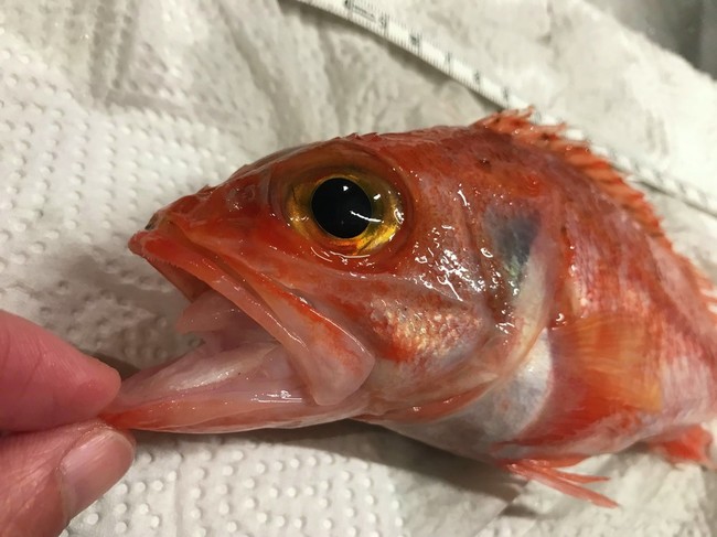 ユメカサゴの耳石は、年輪模様がきれいに浮き出て美しい。