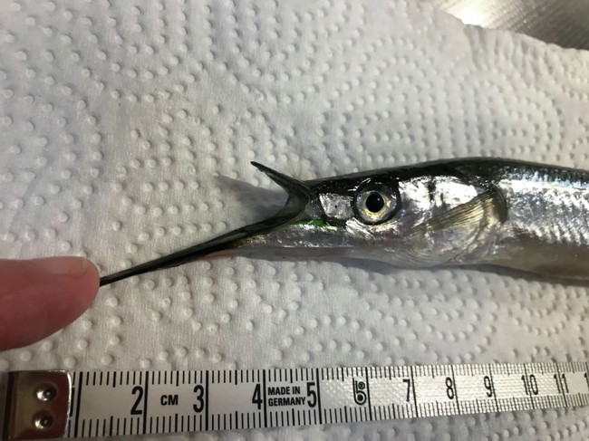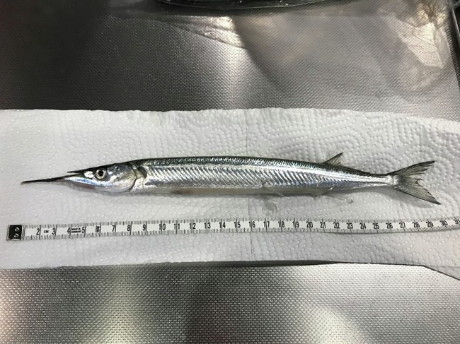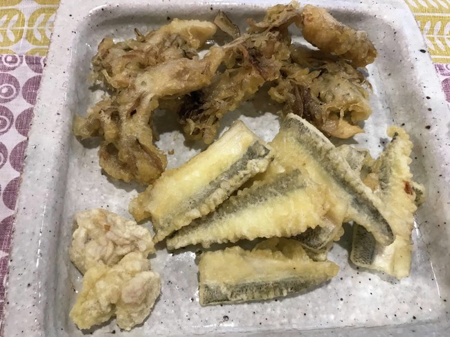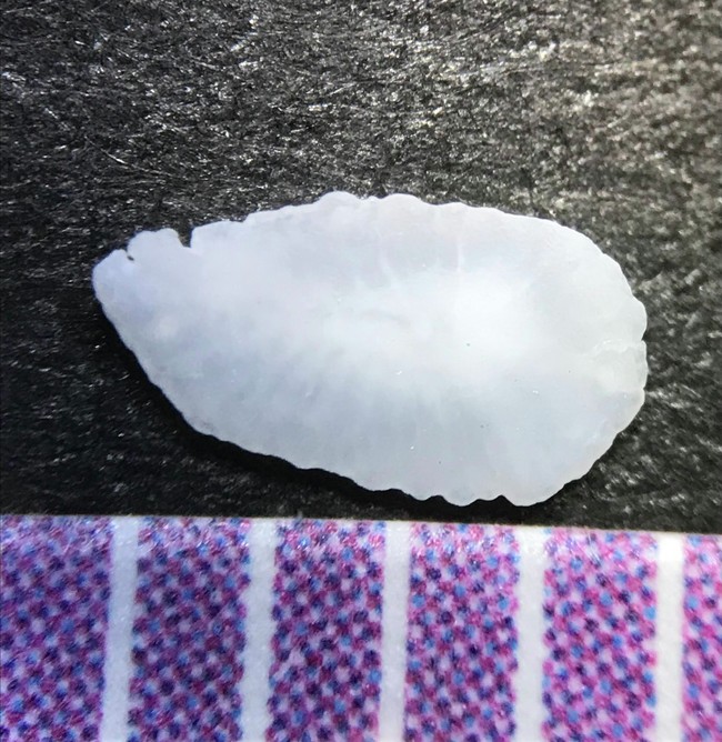 2022-04-25 サヨリの天ぷら サヨリ 愛知県産のサヨリ、1尾298円を買う。 超受け口。 三枚におろして 天ぷらに。お腹に入っていた白子、舞茸も一緒に揚げる。 生だと身が引き締まっているけど、揚げるとほんわりします。 サヨリの耳石、華奢な体の割には大きいです。 凸側 凹側