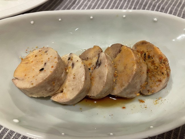 胆は蒸してポン酢と七味唐辛子で。優しいコクを口の中でゆっくりと味わう。
