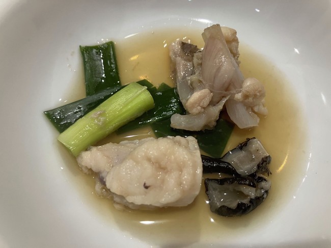 初日は、骨付きの部分と皮をネギと一緒に醤油味で炊く。ぷりぷり。