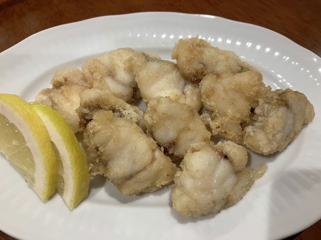 2日目は尾側の部分の身を唐揚げにする。塩とレモンでシンプルに。