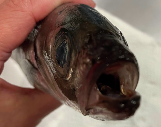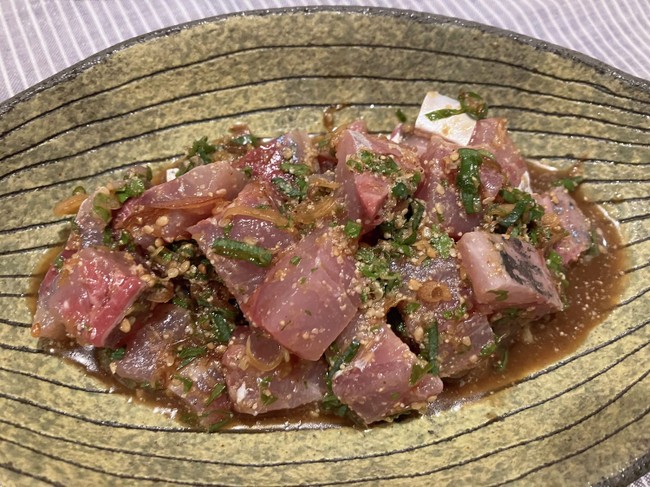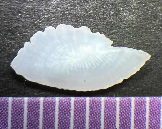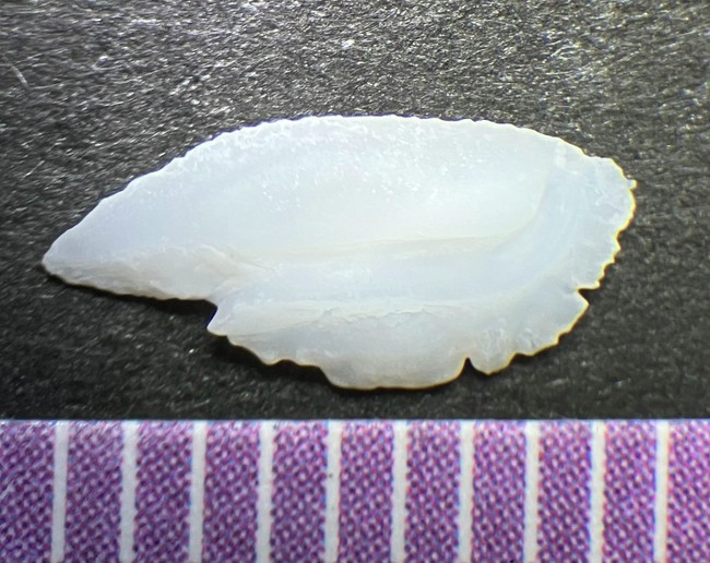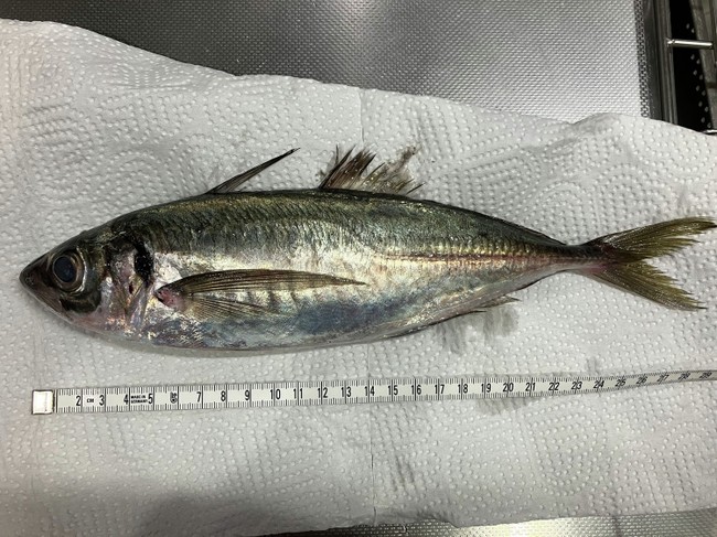 2022-08-05 マアジのゴマだれ マアジ 長崎県産のマアジ、お刺身用、398円を買う。 いつも横姿なので、正面から写真を撮ってみた。自分がアジに捕食されるプランクトンだと想像してみると、こんな顔の敵に襲われる、というか、こんな口に吸い込まれるんだなーと思う。 お刺身用におろして、醤油、みりん、みょうがと青じそのみじん切り、すりごまで作ったタレに和える。 熱々のご飯にのっけたらおいしいかもと思いながら、酒の肴として食べる。 マアジの耳石です。凹側と、 凸側です。