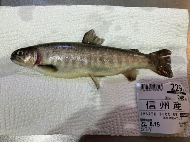 スーパーマーケットの魚コーナーには、信州産の養殖サーモンのお刺身やスモークしたもの、鯉のお刺身や切り身が並んでいる。地元名古屋では滅多に見かけない食材にテンションが上がる。