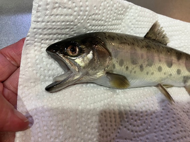 写真下の大きい方はヤマメ。サクラマスの海に下らないもの指すそうだ。