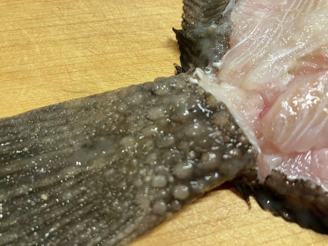 わずかに残る皮。サメガレイというだけあって、皮は鮫肌状で触ると痛い。