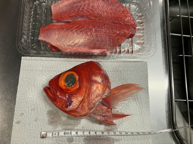 スーパーの魚売り場で1000円均一セールをしていた。サゴシにカレイにクロムツなどが1尾1000円、目玉商品のツバスは2尾で1000円。その中でひときわ赤く輝いていたのがキンメダイ。お刺身もOKと書かれている。