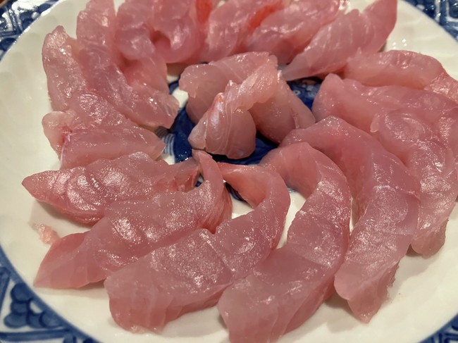 お刺身で食べる。脂がのってツヤツヤ。口に入れた時のとろけるようなツルツル感がなんとも言えない。旨味もたっぷり。