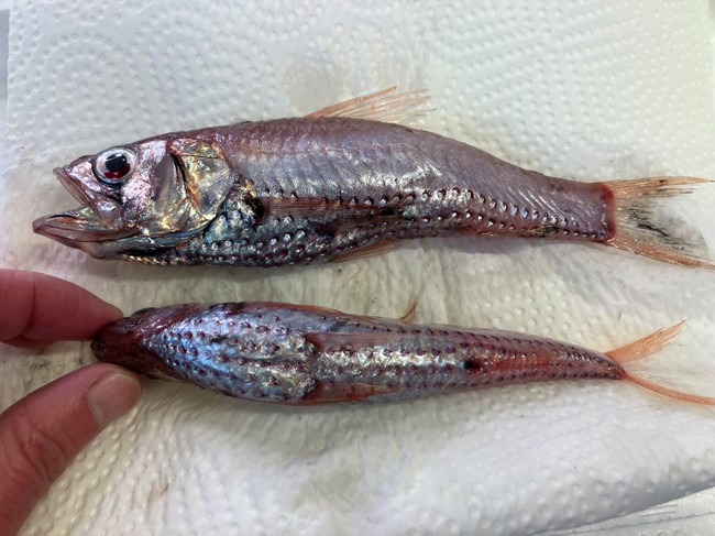 全部で12種類の魚、エビ、イカが入っていた深海魚直送便。最後を飾るのはサンゴイワシ。嬉しい初コレクション。