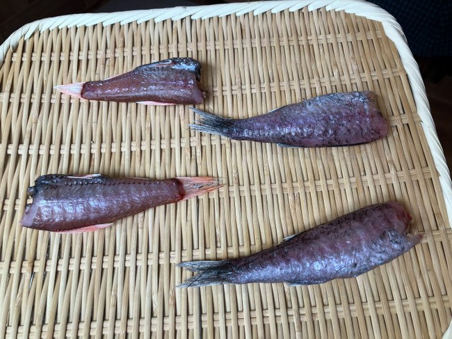 スミクイウオと一緒に一夜干しにしました。(サンゴイワシは左の2尾)