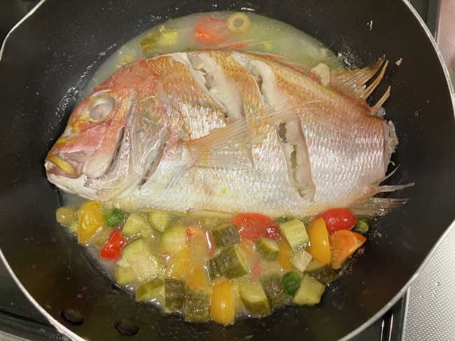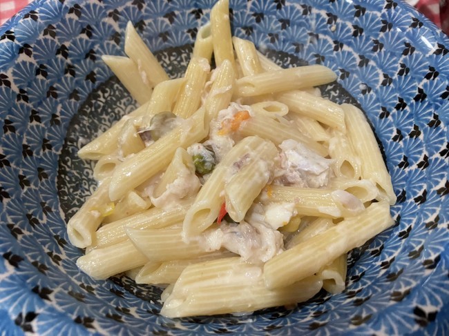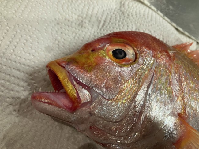 2023-03-16 レンコダイのアクアパッツァ風 レンコダイ 長崎県産のレンコダイ、498円を買う。 上唇はラメ入りの黄色。 アクアパッツァがお勧めと書かれていたので、それっぽい感じ煮る。 申し訳ないが、フライパンからはみ出た尾はちょきんと切り落とす。 魚の身はもちろん美味しいが、煮汁がまた美味しいので残しておく。 そして翌日は生クリームを足し、ペンネに旨味を吸わせる。 レンコダイの耳石は肉厚で大きいです。 凸側。ん?誰かが齧った?右下が欠けてる。 凹側