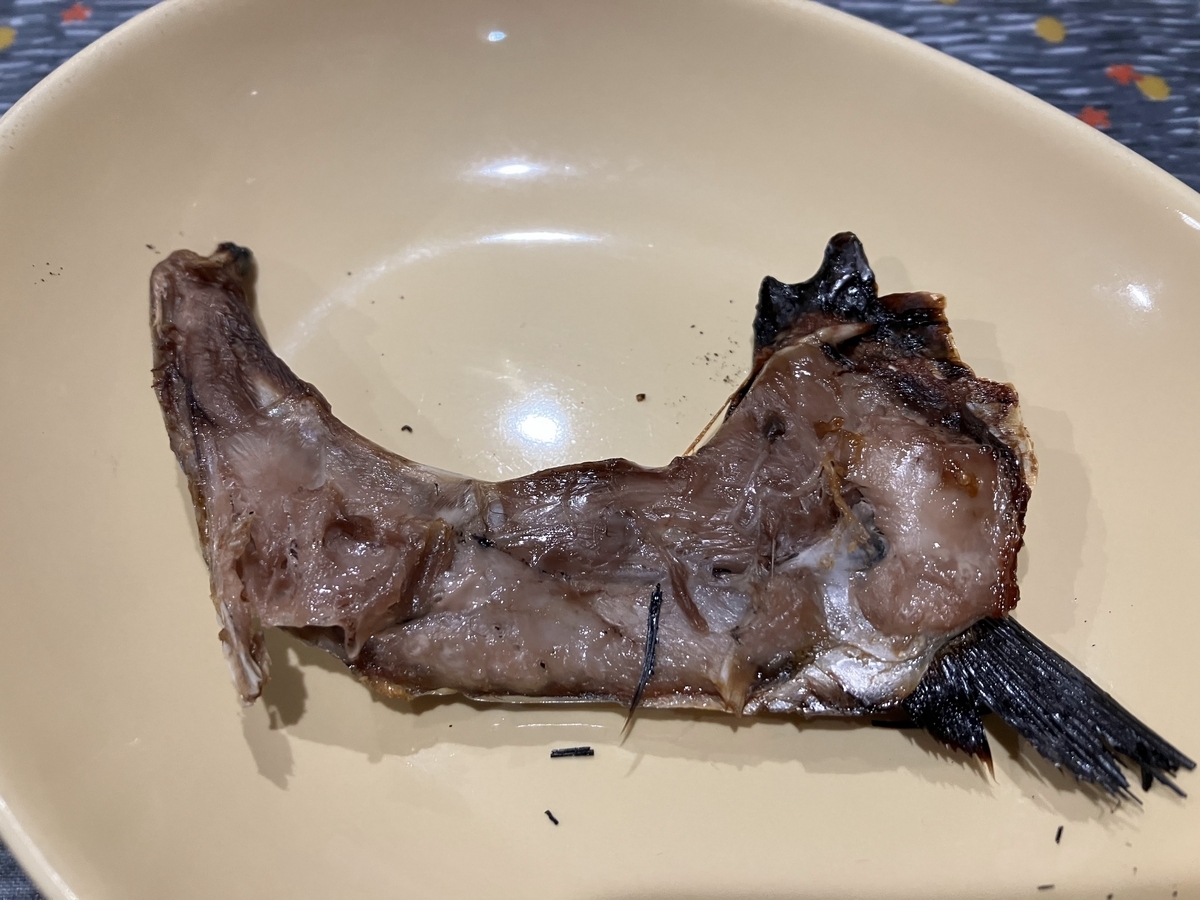 耳石を取り出すために頭を茹でる時に、中骨も一緒に茹でて身を取りました。