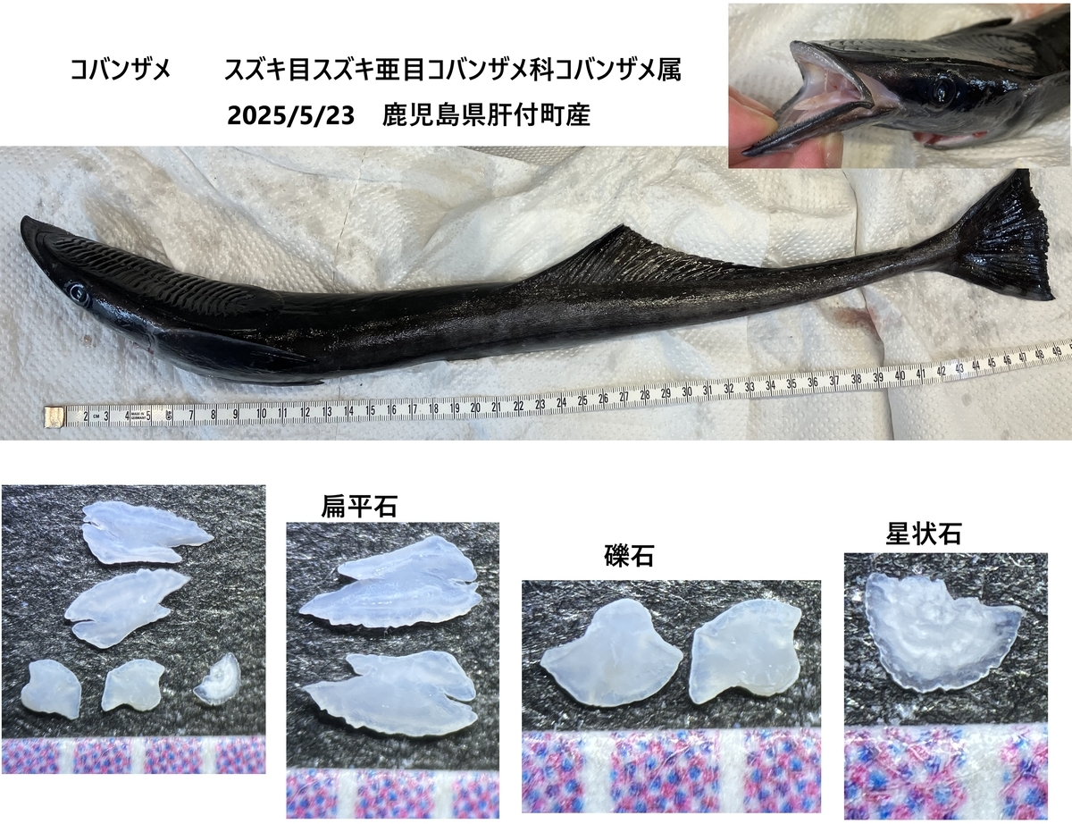 さて、コバンザメはサメという名前がついてますが、サメではなく硬骨魚です。ちゃんと硬い骨があります。なのでちゃんと耳石もありました。
