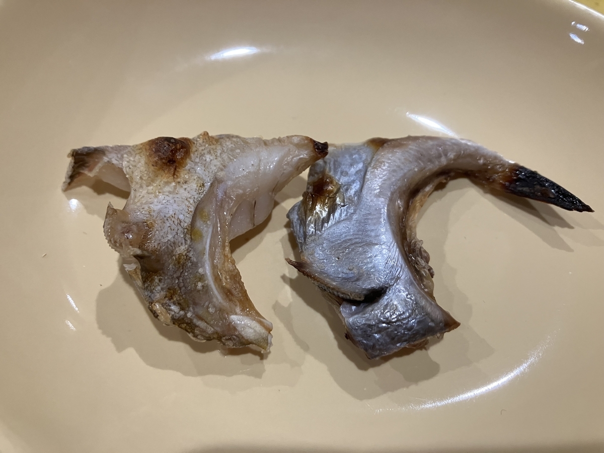2025-06-27 オオモンハタ オオモンハタ 鹿児島県肝付町から送られてきたロコフィッシュ、5種目、最後の魚はオオモンハタです。 地味な水玉模様です。 お刺身でいただきました。弾力があって、旨味と甘味があって美味しかったです。 焼いたものも味わいたかったので、小さいけど、カマを塩焼きにしてみました。 しっかりした食べ応えで、焼いても美味しい魚だと思いました。 このオオモンハタの耳石です。頭蓋骨を割る時に扁平石が1つ割れてしまい、星状石も採取できなかったのが無念です。
